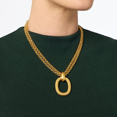 Add a touch of whimsy to your look with the Julie Voss Cheval Pendant. The textured oval link, braided with golden wire, adds a playful spin to the...