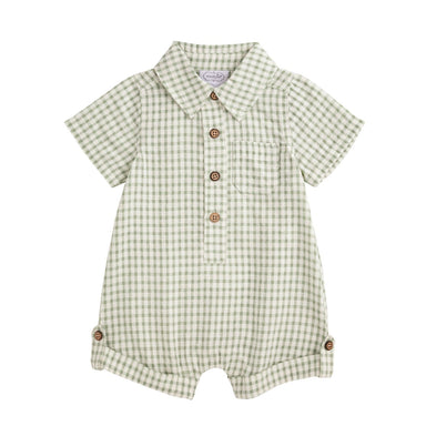 Sweet, classic, and perfect for warm days, this green gingham shortall brings timeless charm to your little one’s wardrobe. Designed with an adorab...