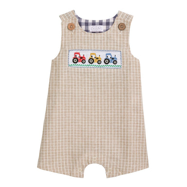 Classic, playful, and perfectly detailed, the Smocked Tractor Jon Jon is a charming outfit for your little one. Crafted from soft striped linen, it...