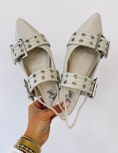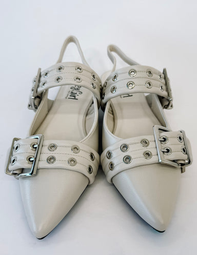 Make a sleek statement in the On The Prowl Flat by Corkys. With its sharp pointed toe and double buckle straps decked out in silver grommets, this ...
