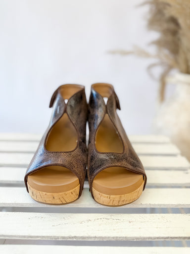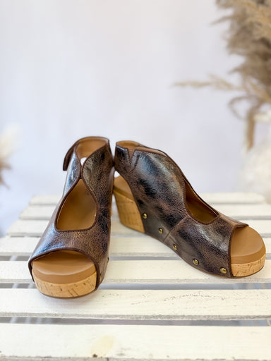 Step into effortless sophistication with the Corkys Frisky Wedge Sandals. Crafted in a rich espresso crinkle faux leather and finished with brass s...