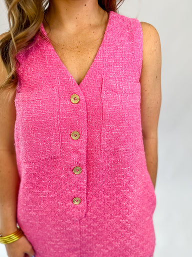 Effortlessly chic and versatile, the Chanel Charm Romper features a trendy tweed design with two front pockets. Perfect for any occasion, this romp...