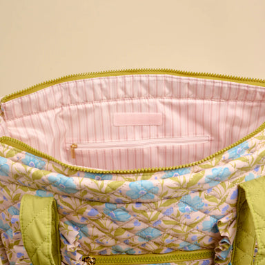 Ready, set, jet off! Our On-the-Go Quilted Weekender Bag in Poppin' Petals Aqua is your new travel bestie—packed with personality and pockets galor...