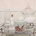 - Decorative ceramic tissue vessel with green and red floral bird-and-bloom design