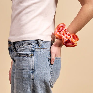 Make a statement with our oversized scrunchie! Full of personality, it adds volume and flair to ponytails, buns, or half-up styles. The ruffled des...