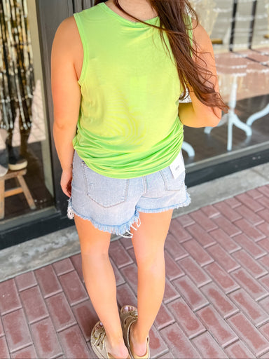 Step out in style with The Elle V-neck Tank! This vibrant lime tank is perfect for adding a pop of color to any outfit. The v-neck design flatters ...