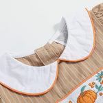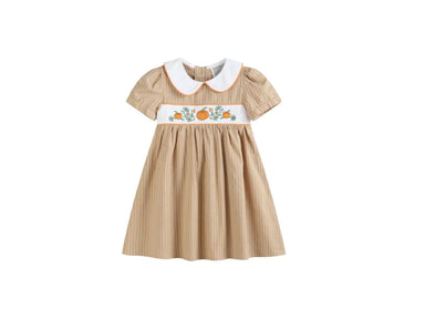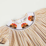 Celebrate the beauty of fall with our Light Brown Pumpkin Smocked Collared Dress. Crafted from 100% cotton, this darling dress features hand...