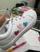 Add a pop of fun to their step with these white faux leather sneakers, featuring playful heart details and classic lace-up styling. Perfect for everyday wear, these shoes combine comfort, durability, and a touch of love.