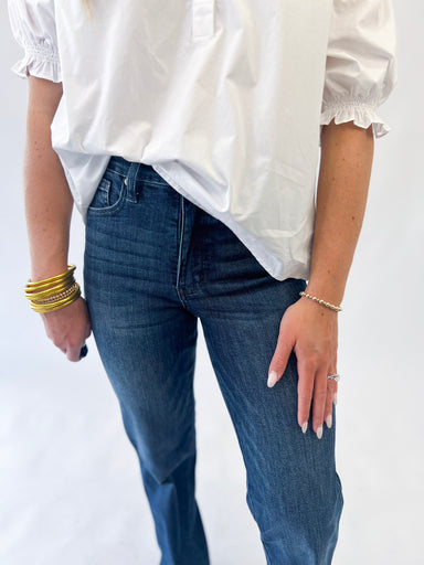 Meet your new go-to denim—the perfect mix of timeless style and confidence-boosting comfort. These mid-rise straight leg jeans feature a built-in t...