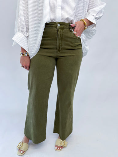 Slip into laid-back luxe with the Aurora Weekender Jogger from Judy Blue. Garment-dyed in a rich dark forest green, these high-waist jogger jeans b...