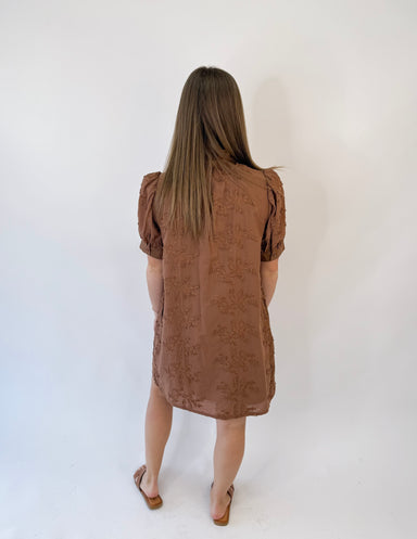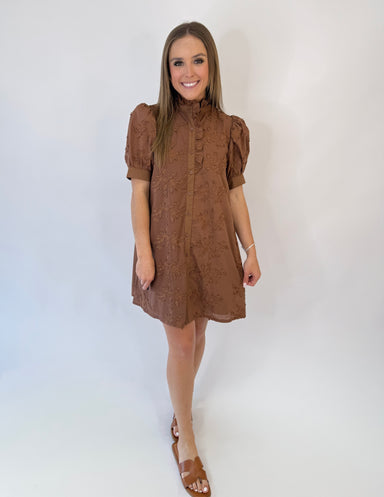 Mocha 3D Floral Appliqué Puff Sleeve Mini DressA statement mini dress that blends playful texture with timeless detail. Designed in a mocha hue, it...
