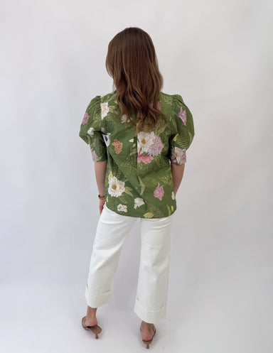 Delicate and feminine, this floral print top features puffed shoulder sleeves with scallop-finish detailing for a charming touch. A button closure ...