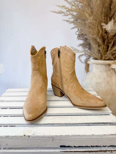 The CASEY Mini Western Boots add a dash of rustic flair with their intricate stitching and sleek mini design. Perfect for teaming up with jeans, sk...