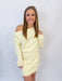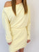 A fresh take on timeless femininity, this draped off-the-shoulder mini dress is designed to bring effortless charm and versatility to your summer wardrobe. Its soft pastel butter hue pairs with the fluid draping and flattering silhouette, making it a standout piece for both daytime and evening occasions.