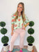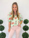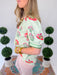 The Pretty in Petals Ruffle Neck Top exudes effortless elegance with a touch of playful charm. In a soft light sage hue with an abstract jacquard print, this blouse features a split V-neck, short puff sleeves, and contrast trim detailing for a polished, refined finish. Lightweight and flowy, it pairs beautifully with tailored pants or a skirt for a chic, elevated look.