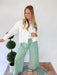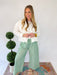 Embrace understated elegance with these Garden Stroll Wide Leg Pants in a sophisticated green hue. The linen-cotton blend offers breathable comfort ideal for warm weather, while the relaxed wide-leg cut provides a refined, contemporary silhouette. An adjustable tie belt allows for personalized fit, and practical side pockets add functionality to this versatile piece. Perfect for effortless, polished dressing from morning to evening.