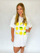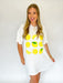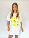 Sweet, sour, and sparkling with style. The Lemon Wedge Short Tee Dress is a relaxed-fit graphic tee featuring a bold lemon wedge print with rhinestone embellishments that add just the right amount of sparkle. With comfy short sleeves and an easygoing silhouette, it’s perfect for sunny days, sipping spritzers, and serving citrusy sass wherever you go.