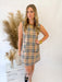 A modern take on a timeless classic, this checkered dress combines clean lines with subtle detail for a versatile, polished look. Finished with faux leather trim and practical touches, it’s the perfect piece for effortless styling.