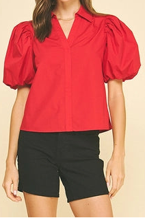 A chic and versatile piece designed to refresh your wardrobe. This top features a flattering V-neck and playful bubble sleeves, with delicate shirr...