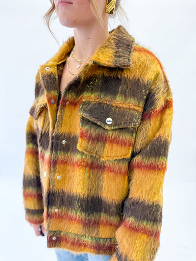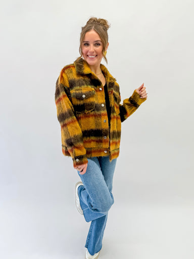 Stay on trend with the Darcey Shacket - the ultimate combination of style and comfort. This retro-inspired jacket features a unique space dye patte...