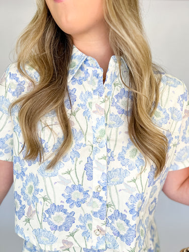 Introducing our relaxed poplin shirt in a soft baby blue hue that blends casual ease with effortless charm. Accented with dainty gold heart buttons...