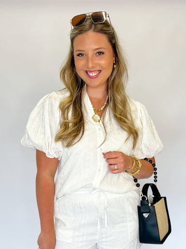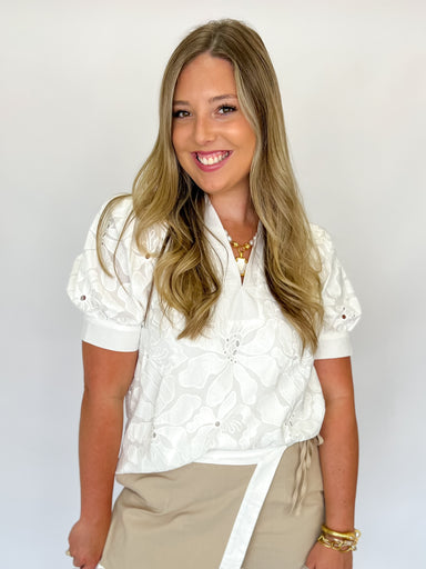 This charming cotton top combines effortless femininity with timeless style. The soft silhouette and delicate details make it a versatile pi...