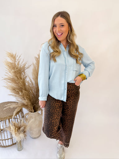 Relaxed yet stylish, these wide leg denim pants combine comfort with subtle statement details. The drawstring waist and side leopard contrast add a...