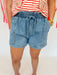 The Harper Shorts bring effortless style to your summer lineup with a flattering high-rise fit and an asymmetrical seam band that adds just the right edge. Designed with a pull-on style, these woven denim shorts feature an adjustable front tie waistband for the perfect fit every time—comfort meets cool girl energy. Lightweight, unlined, and non-sheer, with side pockets to top it all off? These are your grab-and-go shorts for everything from coffee runs to weekend road trips.