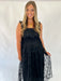 Romance in every ruffle. The Delicate Lace Maxi Dress is the definition of feminine elegance. Featuring an all-over textured floral lace overlay and a flattering square neckline trimmed with soft ruffles, this dress is made for twirling into your most graceful moments. The smocked back offers a comfy, flexible fit, while the tiered skirt and ruffled hem add gorgeous flow. Finished with side lace bow accents and a soft lining for all-day comfort, this maxi is perfect for weddings, garden parties, or any moment worth remembering.