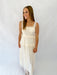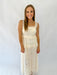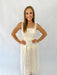 Romance in every ruffle. The Delicate Lace Maxi Dress is the definition of feminine elegance. Featuring an all-over textured floral lace overlay and a flattering square neckline trimmed with soft ruffles, this dress is made for twirling into your most graceful moments. The smocked back offers a comfy, flexible fit, while the tiered skirt and ruffled hem add gorgeous flow. Finished with side lace bow accents and a soft lining for all-day comfort, this maxi is perfect for weddings, garden parties, or any moment worth remembering.