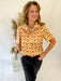 Bring a touch of charm to your wardrobe with this feminine floral high-neck top. Designed with puff shoulders and short sleeves for a chic silhouette, it features soft peach accents and an elegant pearl button closure at the front. Crafted from a lightweight woven blend of cotton and spandex, it offers breathable comfort with a hint of stretch. Unlined and non-sheer for easy wear.
