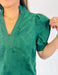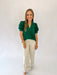 Elevate your spring and summer wardrobe with this delicate floral embroidered pullover. Designed with a romantic short puff sleeve and a pleated band collar, it offers a lightweight, breezy fit perfect for any occasion.