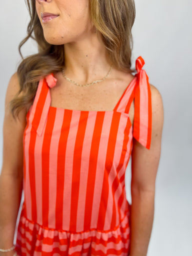 Sweet, flirty, and made for sunshine. The Popsicle Kiss Dress features a charming square neckline, adjustable self-tie straps, and a dainty button-...
