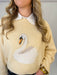 Crafted from a midweight, chunky knit with gentle stretch, this cozy pullover combines comfort with charm. A knit swan graphic graces the front, adding a playful, whimsical touch, while ribbed trim at the crew neckline, cuffs, and hem ensures shape retention. Long sleeves with dropped shoulders complete the relaxed, effortlessly stylish silhouette.
