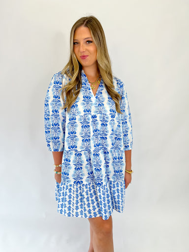 Breezy meets bold in the Rosalynn Dress, your new favorite for sunny days and styled-up moments. With a floral scallop motif print and caftan-inspi...