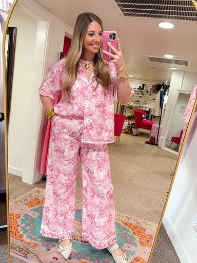 Unwind in style with our Botanical Whisper Pajama Set! This set features a beautiful print and delicate trim for a sophisticated look. Made with co...