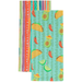 Add some spice and color to your kitchen with this festive set of 2 cotton tea towels. One towel features a playful pattern of smiling tacos, limes, avocados, and chili peppers, while the other shows vibrant fiesta stripes—perfect for brightening up taco night or any meal cleanup.