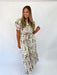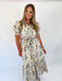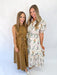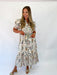 Elevate your everyday wardrobe with this Embroidered Cotton Dress. Crafted from 100% soft cotton, this dress features floral print cuff band short puff sleeve featuring contrast binding inset accents. Button front closure and removable self belt., offering a subtle yet striking statement. Designed with a round neckline accented by green piping trim, puff cap sleeves, and practical side pockets, it combines charm with functionality. The oversized fit ensures comfort while adding a playful, feminine touch. Perfect for effortless daytime styling with a hint of edgy sophistication.