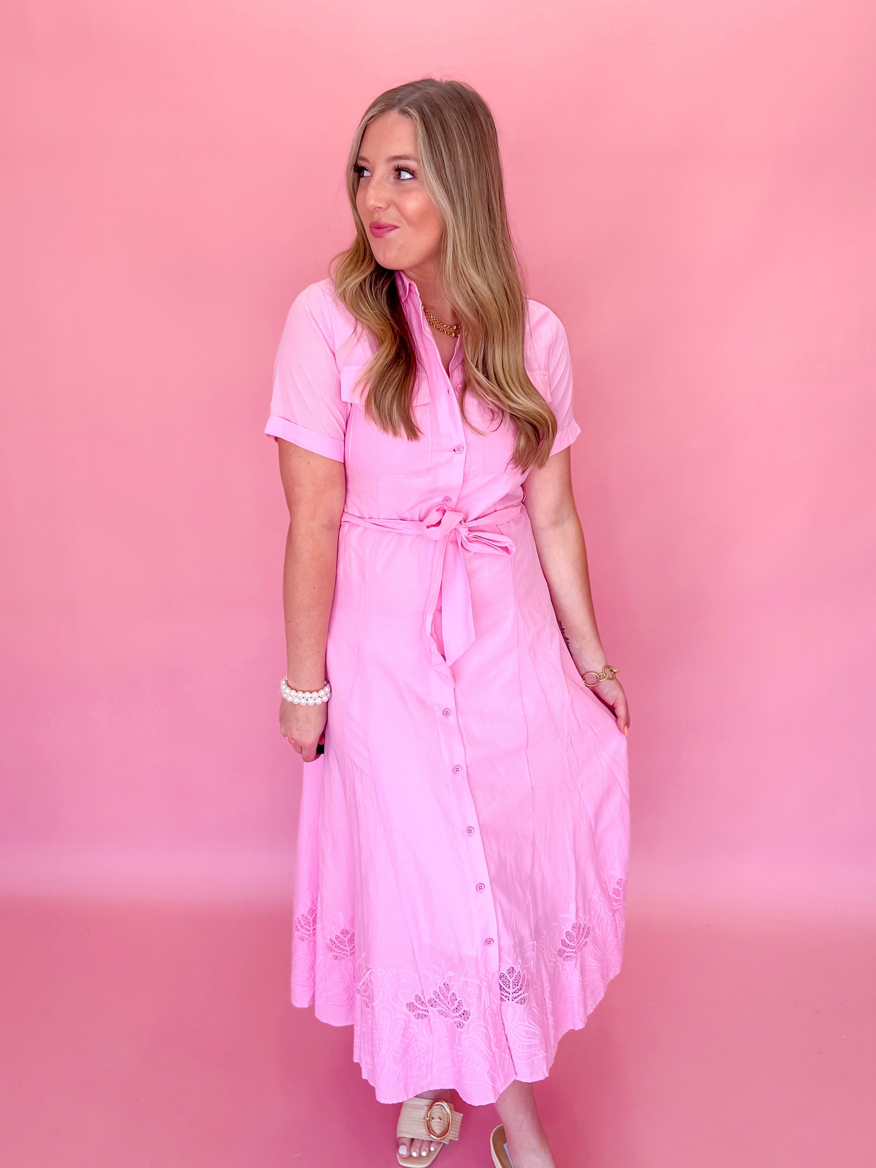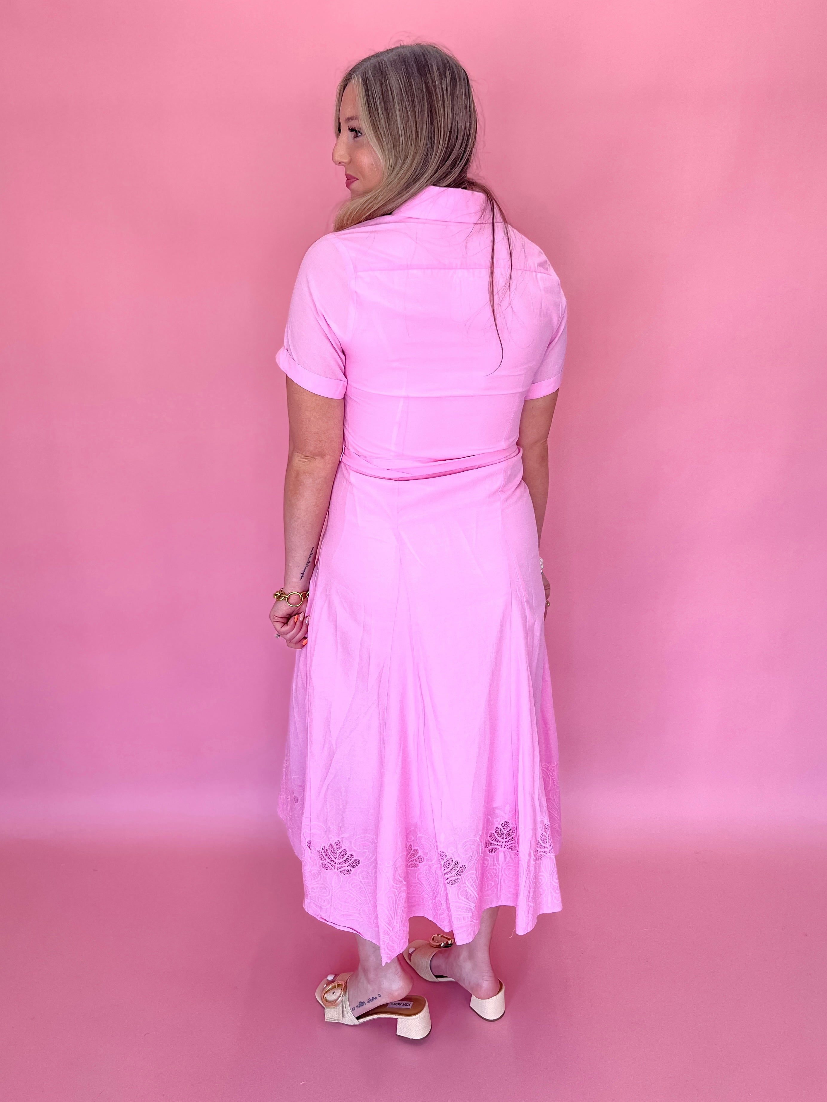 Experience the beauty and elegance of our Sugar Peony Dress! Adorned with tonal embroidery and a button down front, this midi shirt dress exudes sophistication and charm. Perfect for any occasion, this dress is a must-have in your wardrobe!