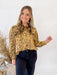 This leopard print blouse adds a touch of bold sophistication to your wardrobe. With its graceful tie-neck detail and flowing silhouette, it’s the perfect mix of playful and polished—ideal for workdays or evenings out.